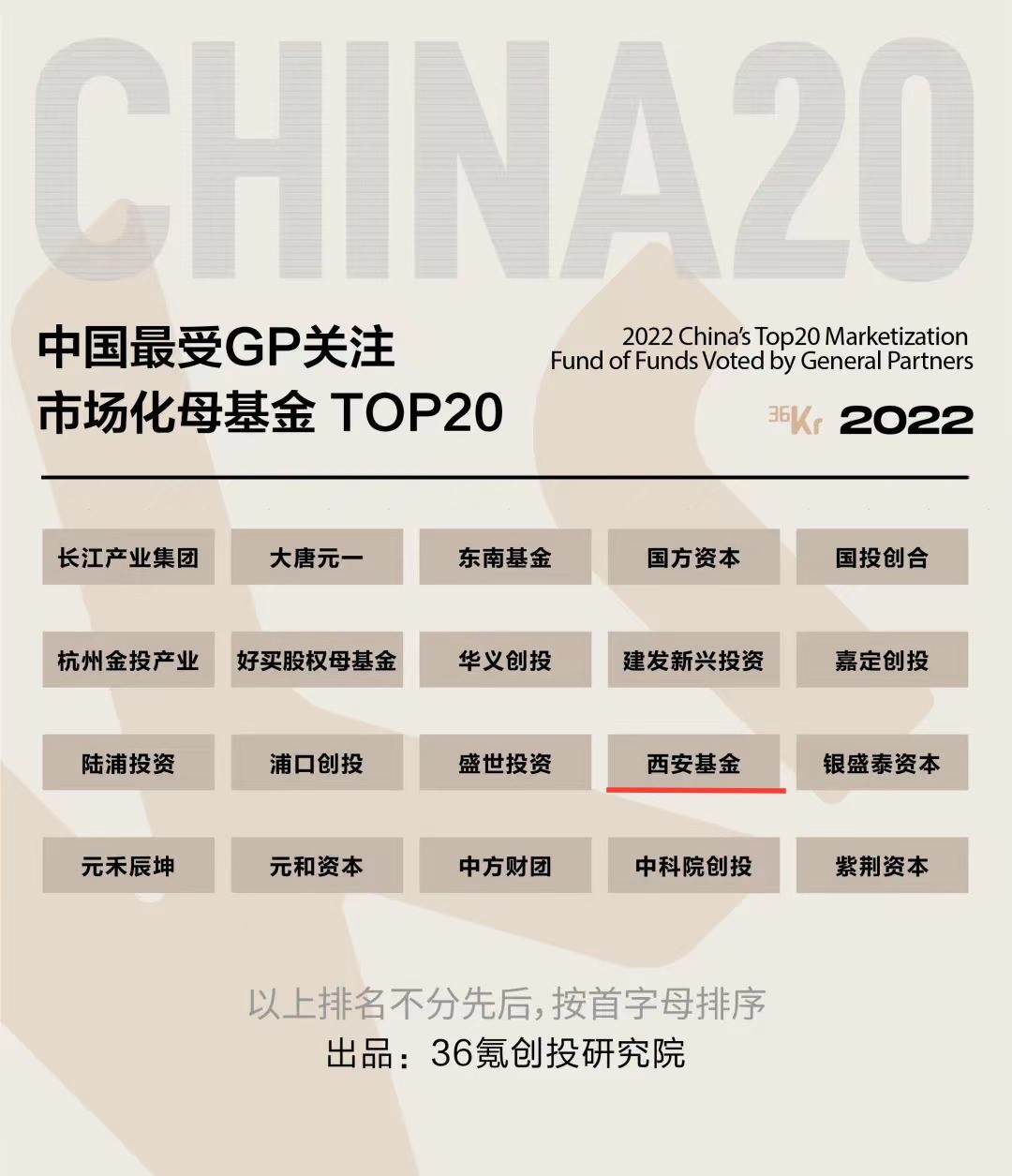 2022年9月21日,在36氪“2022 置身事內(nèi)·中國基金合伙人峰會”上,36氪創(chuàng)投研究院公布了2022年度「本土市場」、「白馬/黑馬」以及「最受GP關注LP」三大系列年度榜單。在「最受GP關注LP」系列榜單中,大西安產(chǎn)業(yè)基金榮獲“中國最受GP關注政府引導基金TOP20”,西安產(chǎn)業(yè)投資基金管理有限公司榮獲“中國最受GP關注市場化母基金TOP20”。